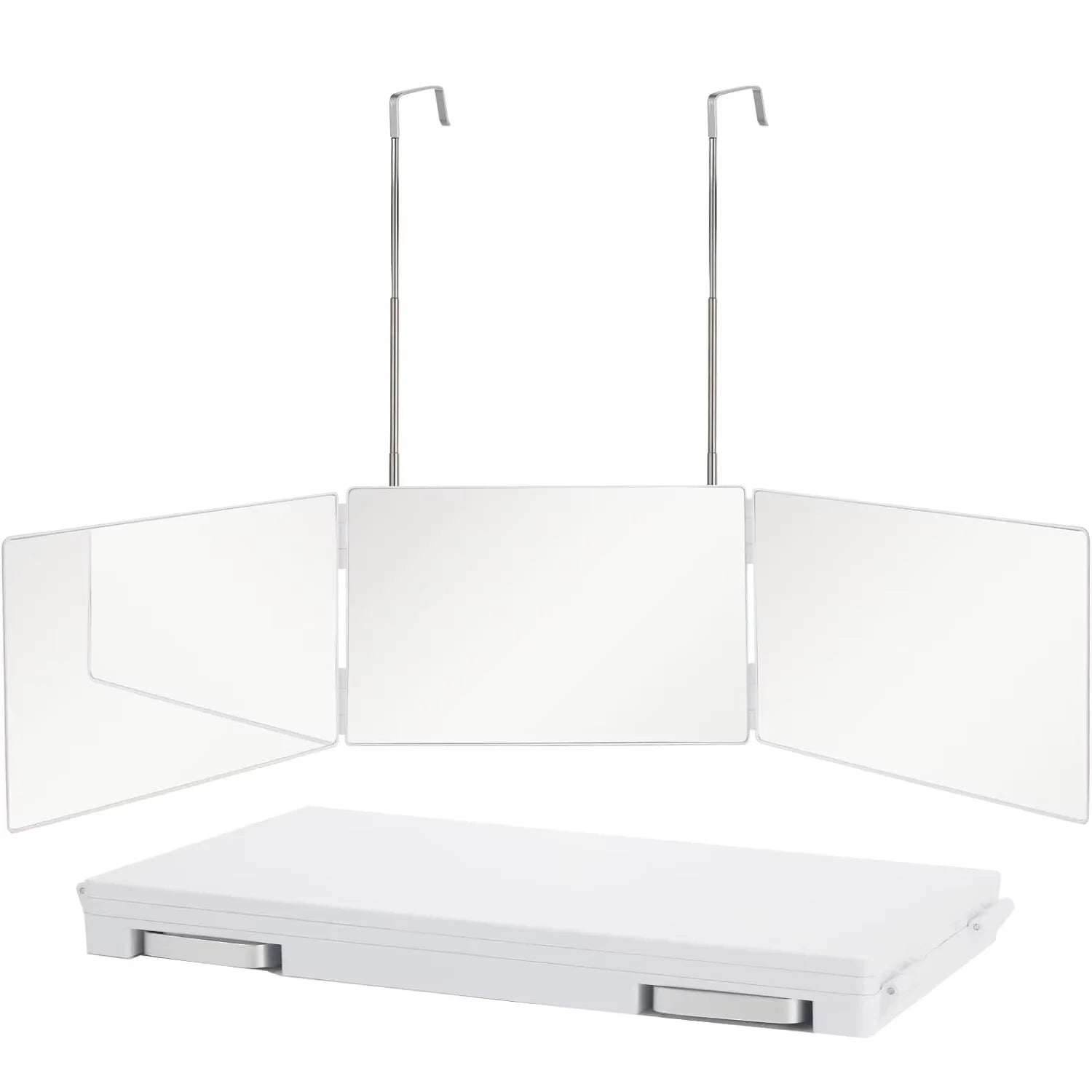 Perfect your look from every angle with the Miragé 3-Panel Folding Mirror with Adjustable Hooks — the ideal tool for self-haircuts, grooming, and makeup. Featuring three high-definition glass panels, it provides a clear, panoramic reflection that makes styling simple and precise.